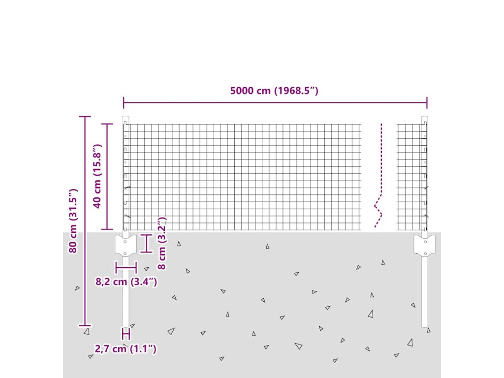 Plot s sloupkem Šedá 0,4 x 50 m Ocel a PVC 3336619