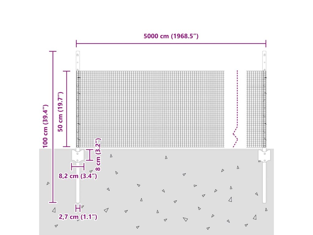 Plot s sloupkem Šedá 0,5 x 50 m Ocel a PVC 3336620
