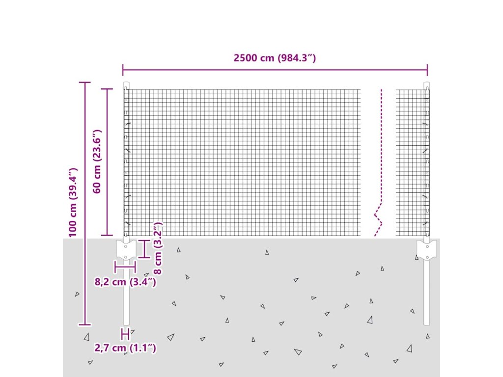 Plot s sloupkem Šedá 0,6 x 25 m Ocel a PVC 3336590