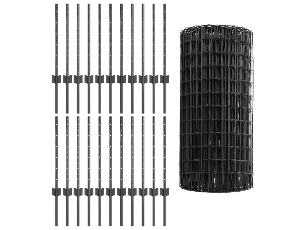 Plot s sloupkem Šedá 0,6 x 50 m Ocel a PVC 3336120