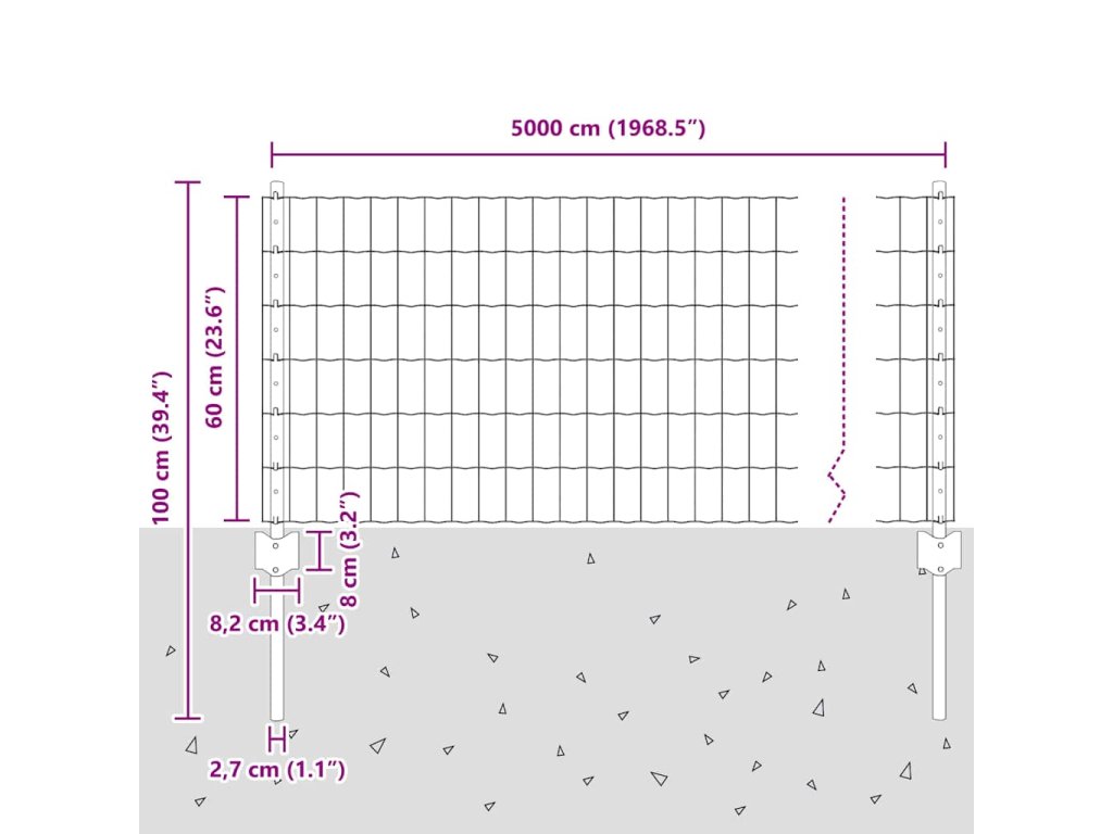 Plot s sloupkem Šedá 0,6 x 50 m Ocel a PVC 3336124