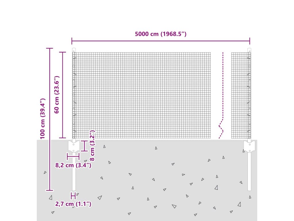 Plot s sloupkem Šedá 0,6 x 50 m Ocel a PVC 3336624