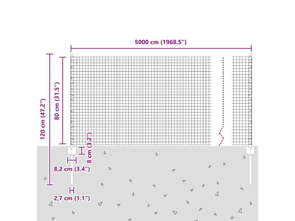 Plot s sloupkem Šedá 0,8 x 50 m Ocel a PVC 3336631
