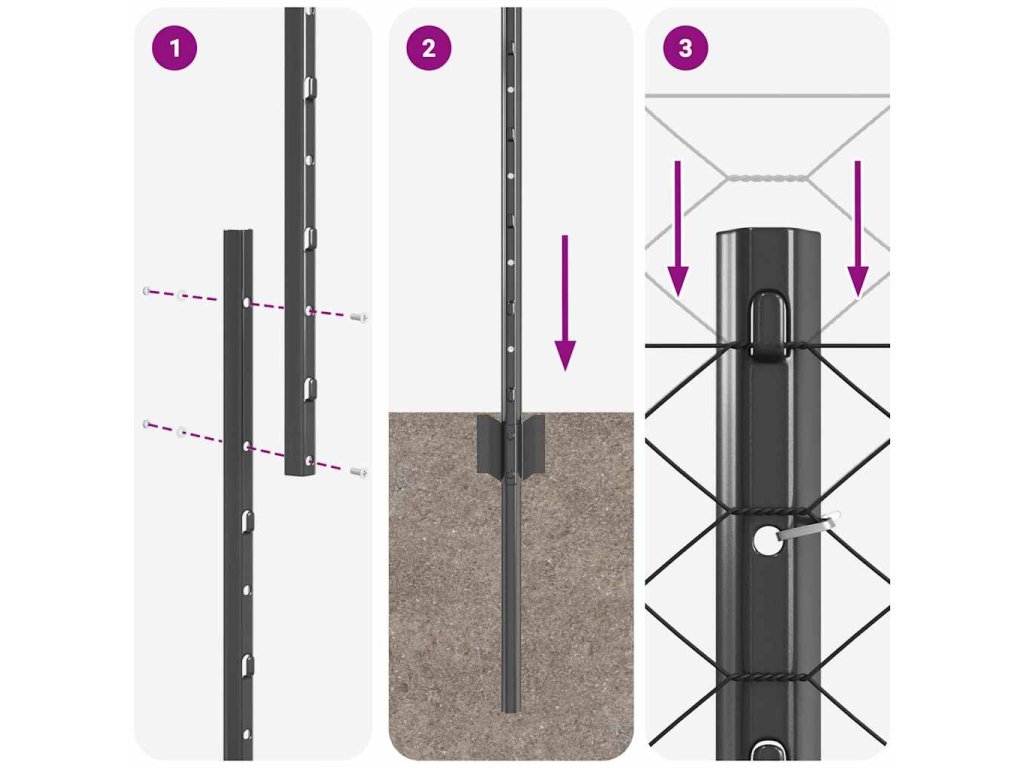 - Součásti sady: V sadě najdete robustní panely a sloupky, které se snadno instalují. Panely jsou pevné, což zaručuje stabilitu a bezpečnost, takže jsou ideální k vymezení plotů nebo k vytvoření soukromí.