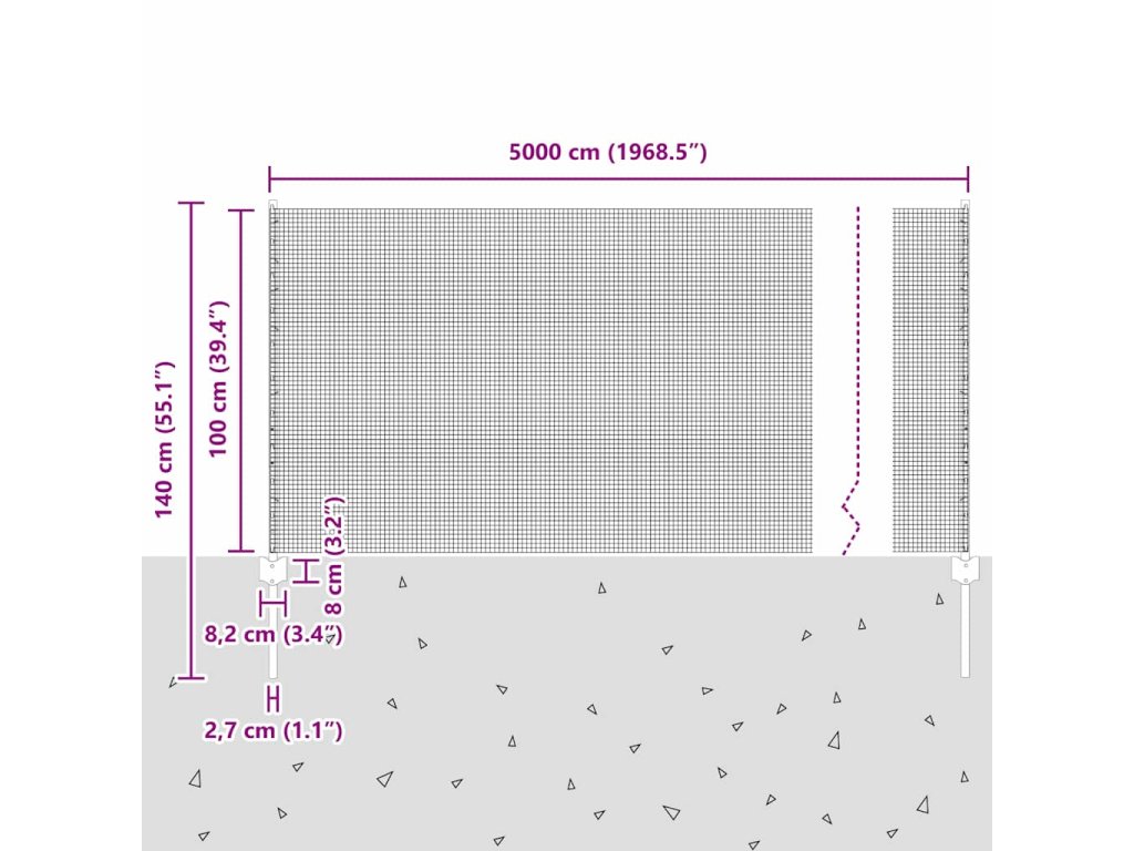 - Celkové rozměry: 5000 x 2,7 x 100 cm (D x Š x V)