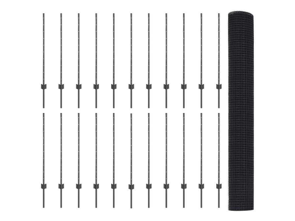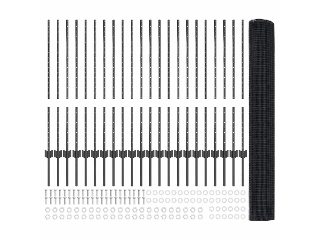 Plot s sloupkem Šedá 1 x 50 m Ocel a PVC 3336633