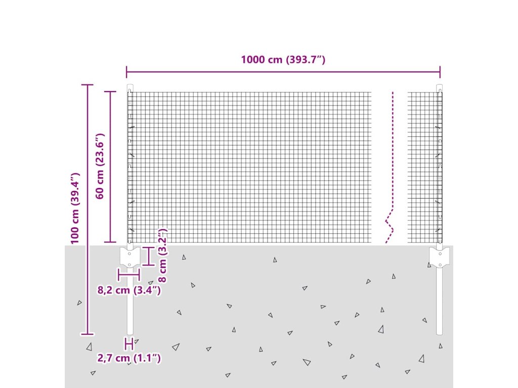 Plot s sloupkem Stříbrná 0,6 x 10 m Ocel 3336318