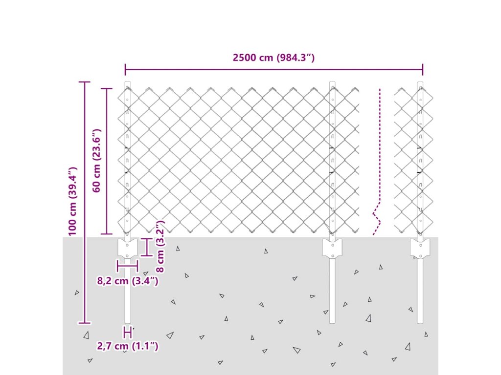 Plot s sloupkem Stříbrná 0,6 x 25 m Ocel 3336305
