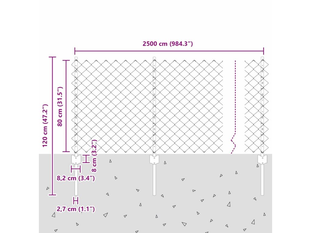 Plot s sloupkem Stříbrná 0,8 x 25 m Ocel 3336306
