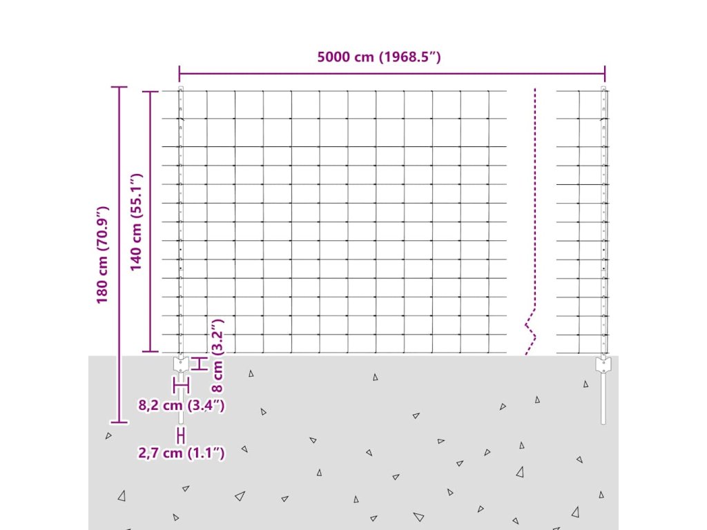 - Celkové rozměry: 5000 x 2,7 x 140 cm (D x Š x V)