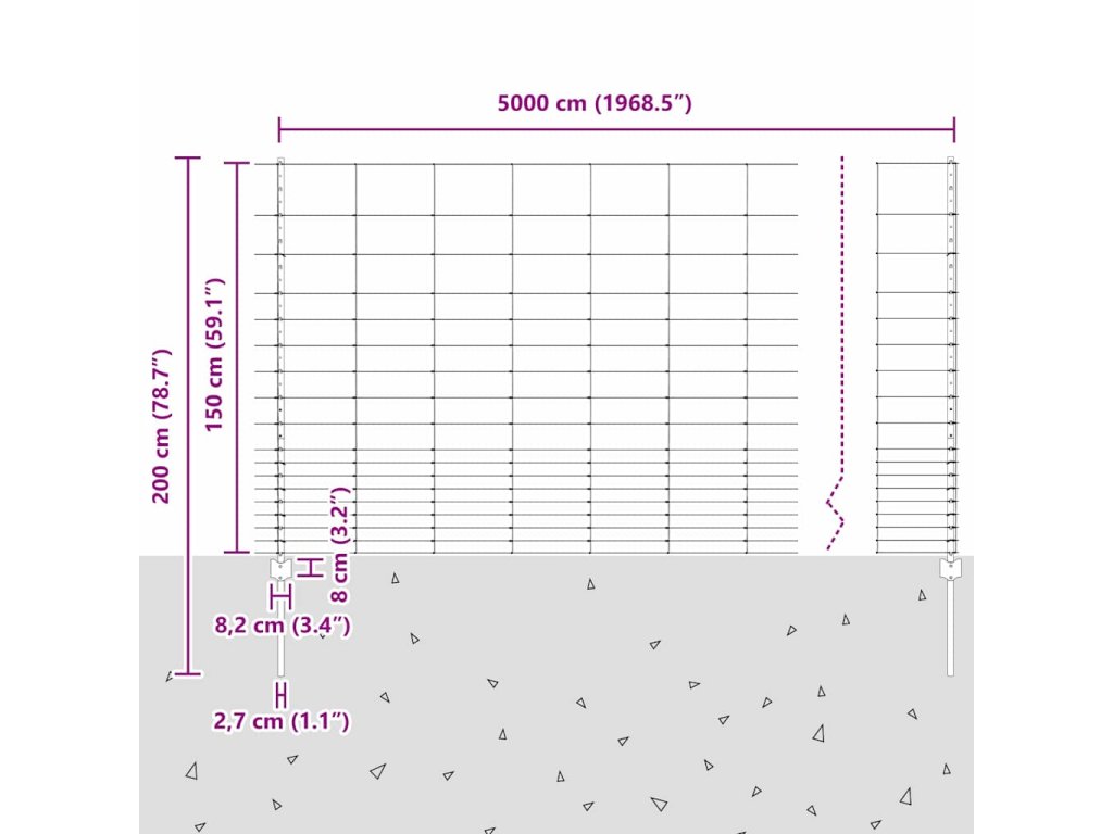 - Celkové rozměry: 5000 x 2,7 x 150 cm (D x Š x V)