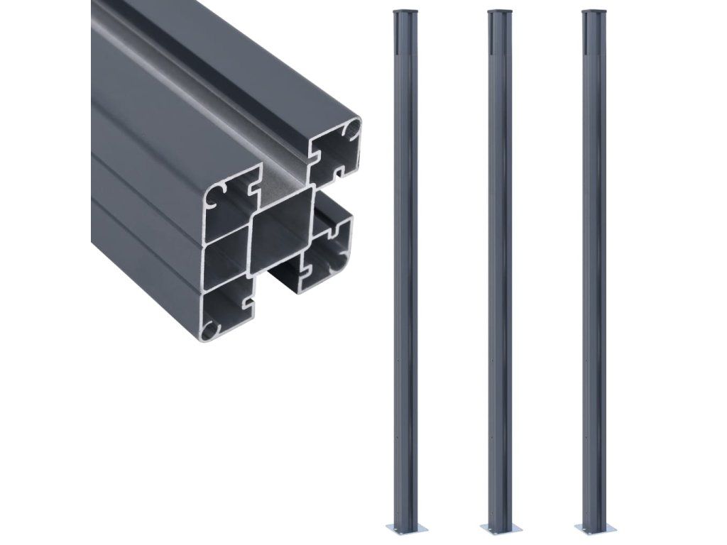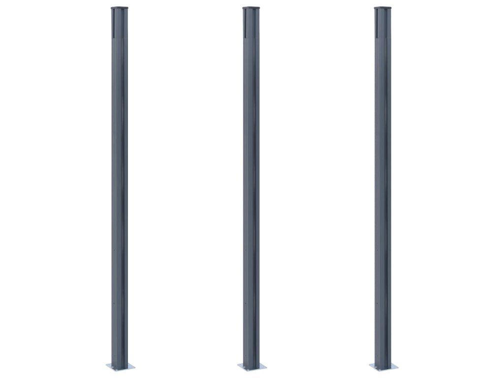 Plotové sloupky 3 ks tmavě šedé 185 cm hliník 148987