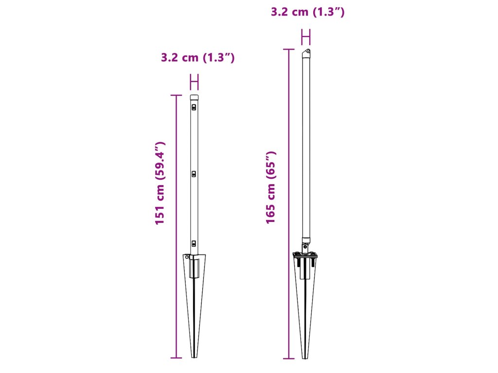 - Celkové rozměry: 3,2 x 3,2 x 165 cm (D x Š x V)