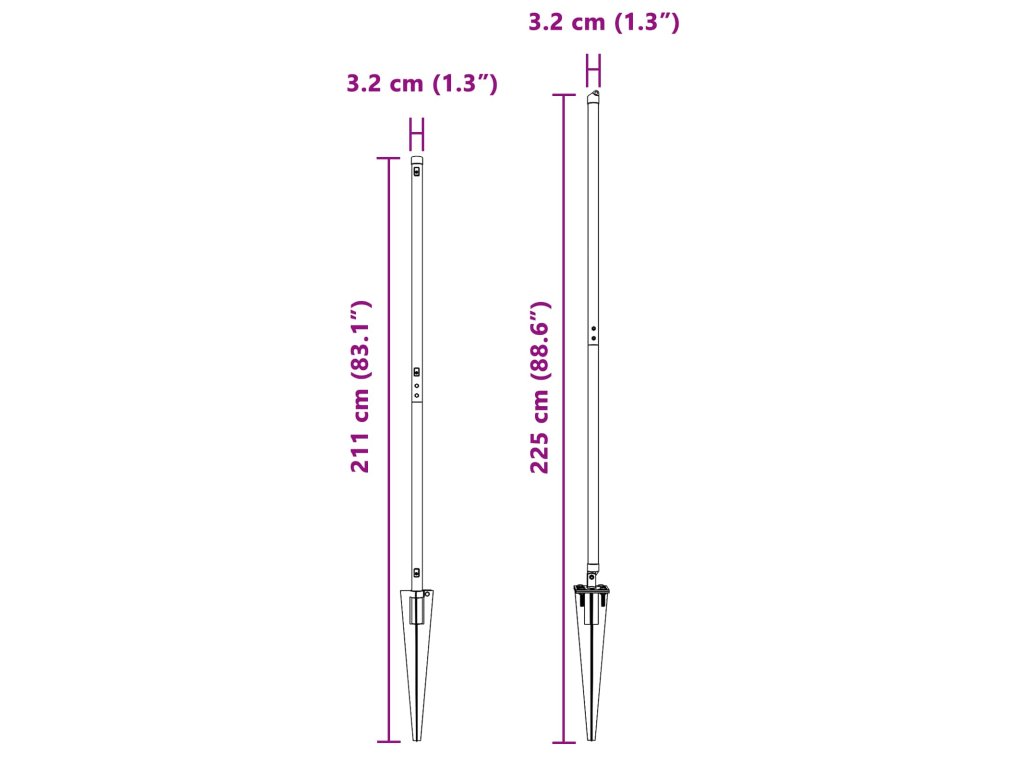 - Celkové rozměry: 3,2 x 3,2 x 225 cm (D x Š x V)