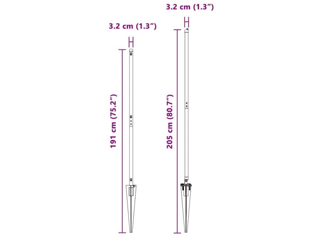 - Celkové rozměry: 3,2 x 3,2 x 160 cm (D x Š x V)