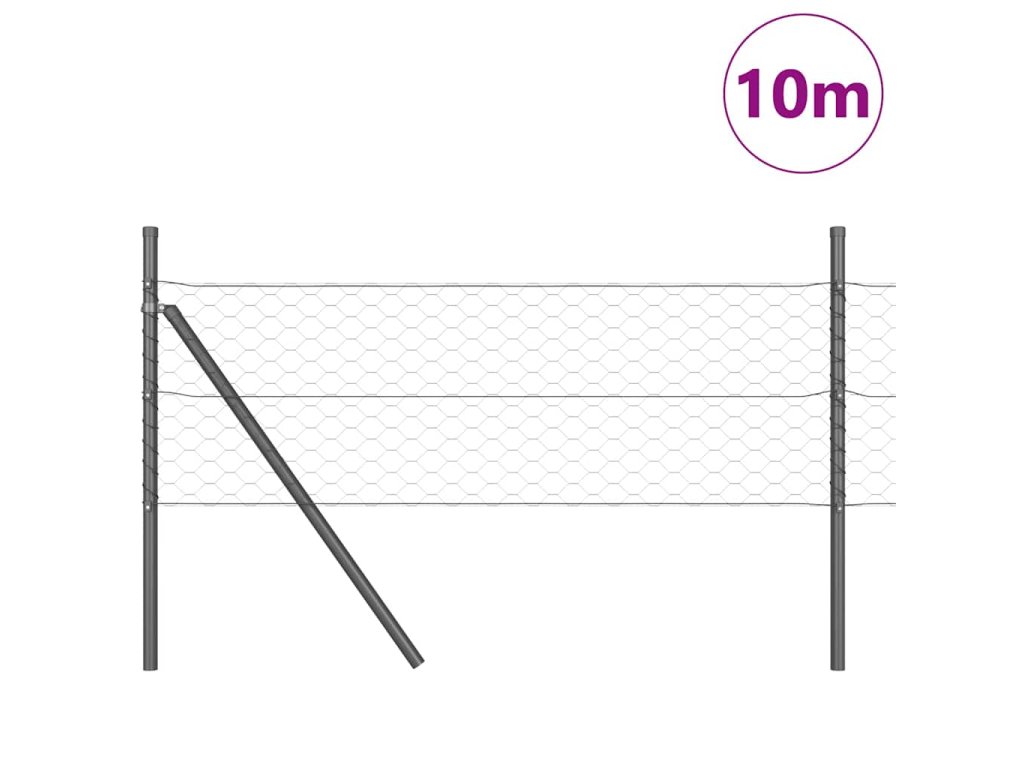 Plotový sloupek. Šedá 10 x 0,4 m (50 mm síťovina) Ocel a PVC 3352764