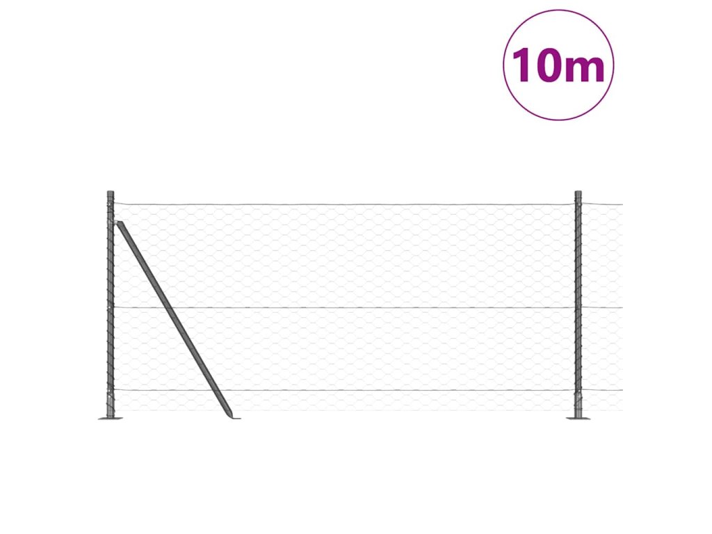 Plotový sloupek. Šedá 10 x 0,8 m (50 mm síť) Ocel a PVC 3353620
