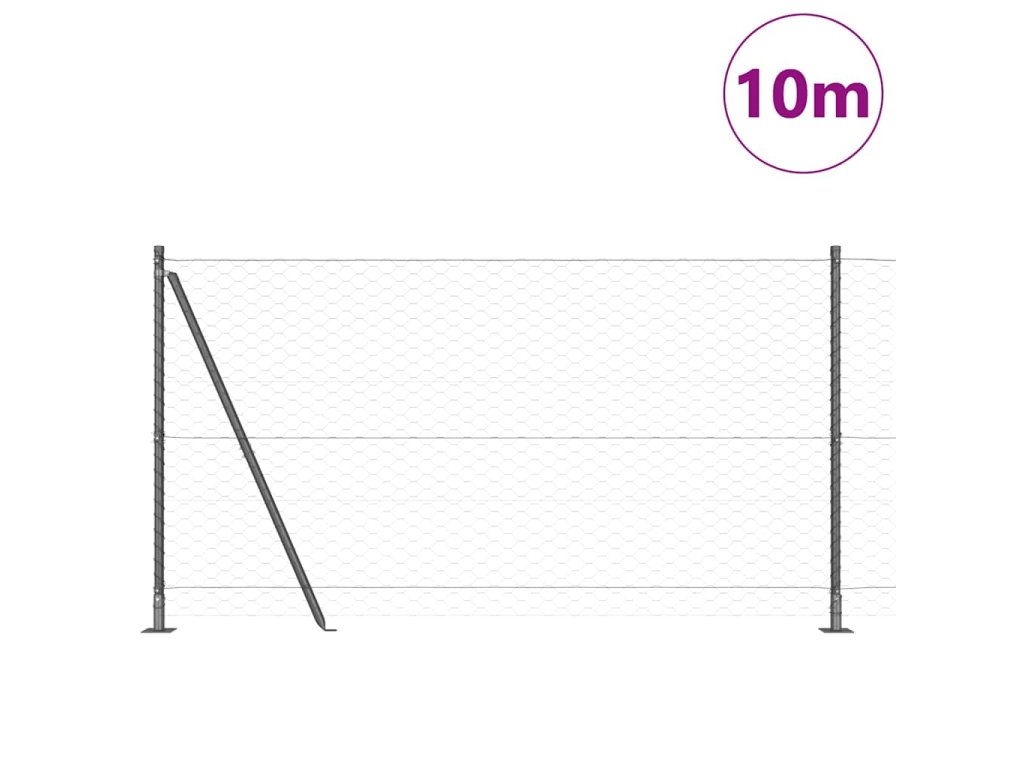 Plotový sloupek. Šedá 10 x 1,2 m (50 mm síť) Ocel a PVC 3353628