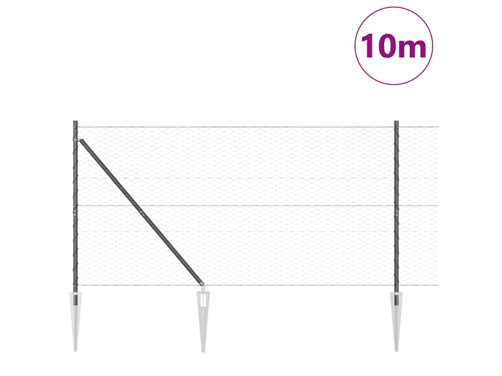 Plotový sloupek. Šedá 10 x 1,4 m (síť 36 mm) Ocel a PVC 3353209