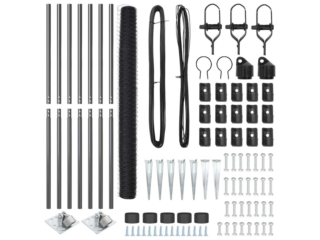Plotový sloupek. Šedá 10 x 1,5 m (36 mm síť) Ocel a PVC 3353213