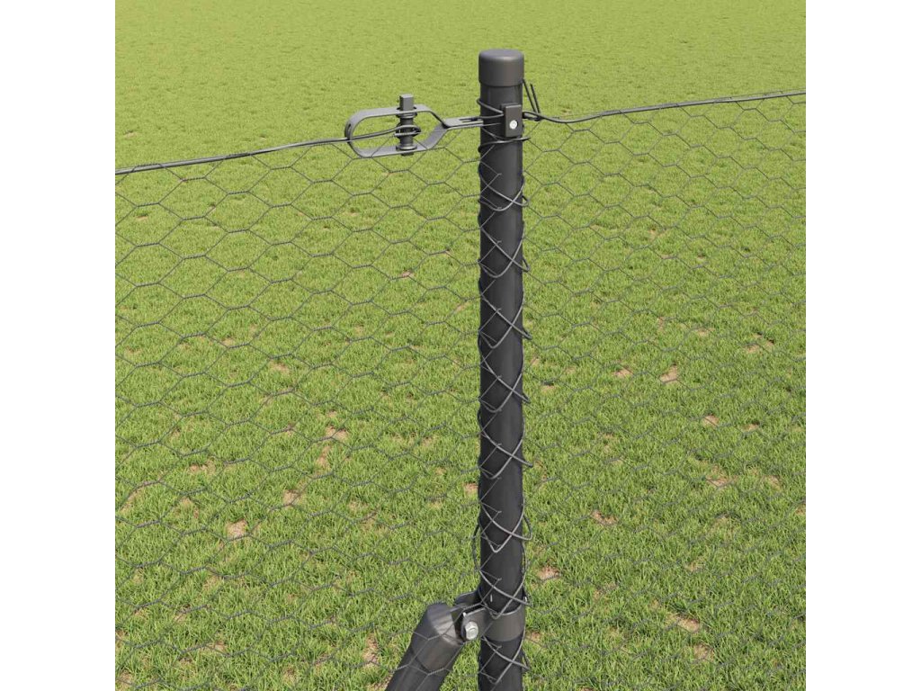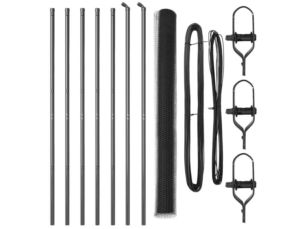 Plotový sloupek. Šedá 10 x 1,5 m (síť 25 mm) Ocel a PVC 3352790