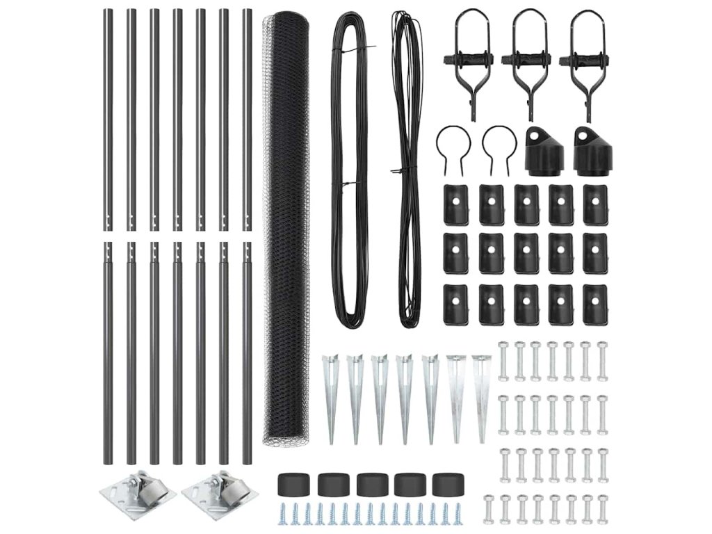 Plotový sloupek. Šedá 10 x 1,5 m (síť 25 mm) Ocel a PVC 3353212