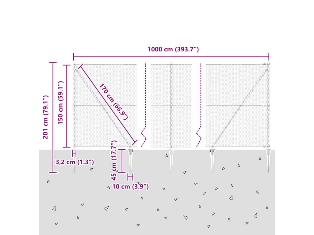- Celkové rozměry: 1000 x 3,2 x 150 cm (D x Š x V)