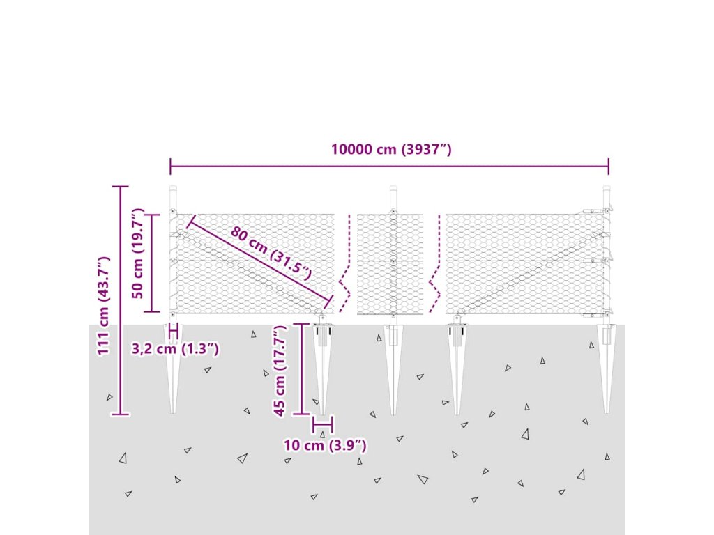 Plotový sloupek. Šedá 100 x 0,5 m (25 mm síť) Ocel a PVC 3353296