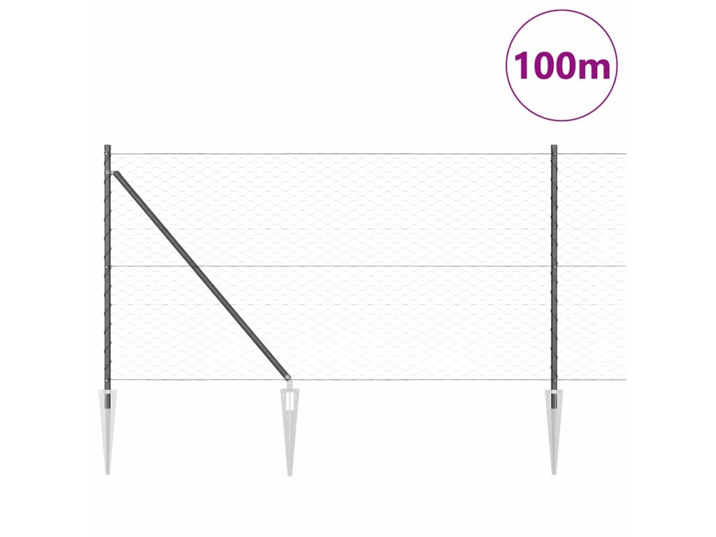 Plotový sloupek. Šedá 100 x 1 m (50 mm síť) Ocel a PVC 3353310