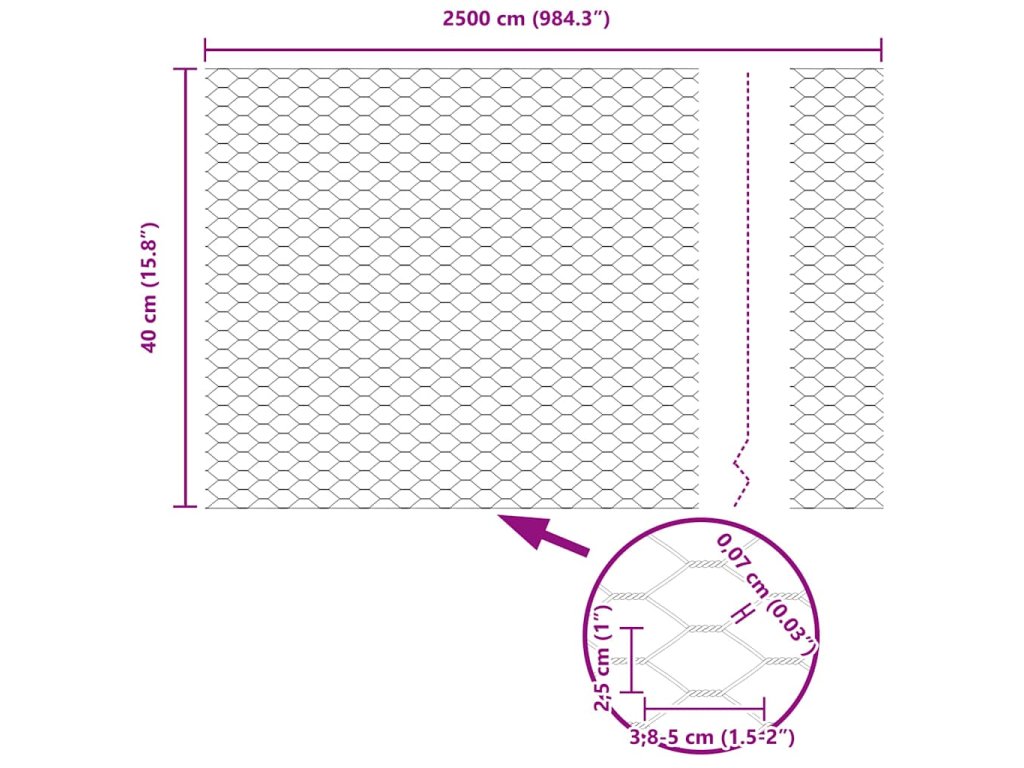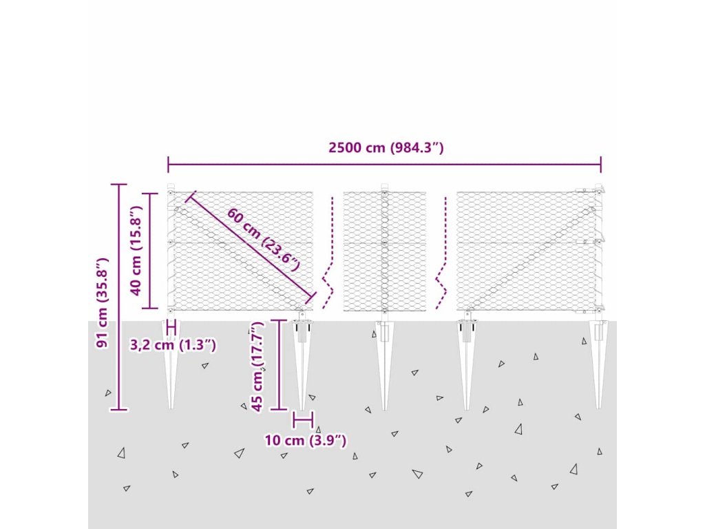 Plotový sloupek. Šedá 25 x 0,4 m (25 mm síť) Ocel a PVC 3353220