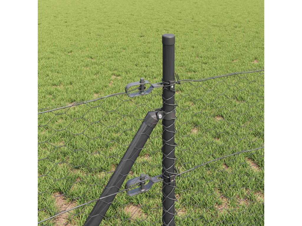 Plotový sloupek. Šedá 25 x 0,4 m (36 mm síť) Ocel a PVC 3352799