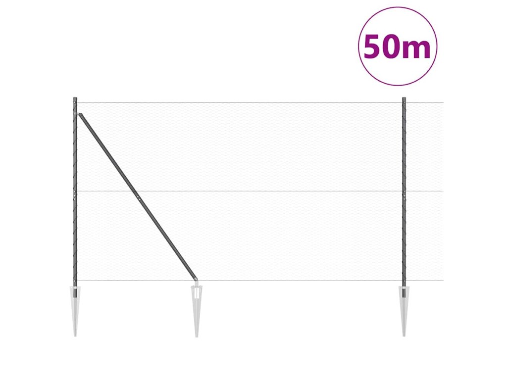 Plotový sloupek. Šedá 50 x 1,5 m (25 mm síť) Ocel a PVC 3353284