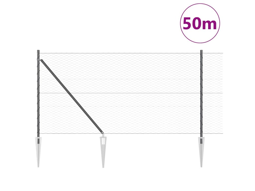 Plotový sloupek. Šedá 50 x 1 m (36 mm síť) Ocel a PVC 3353273
