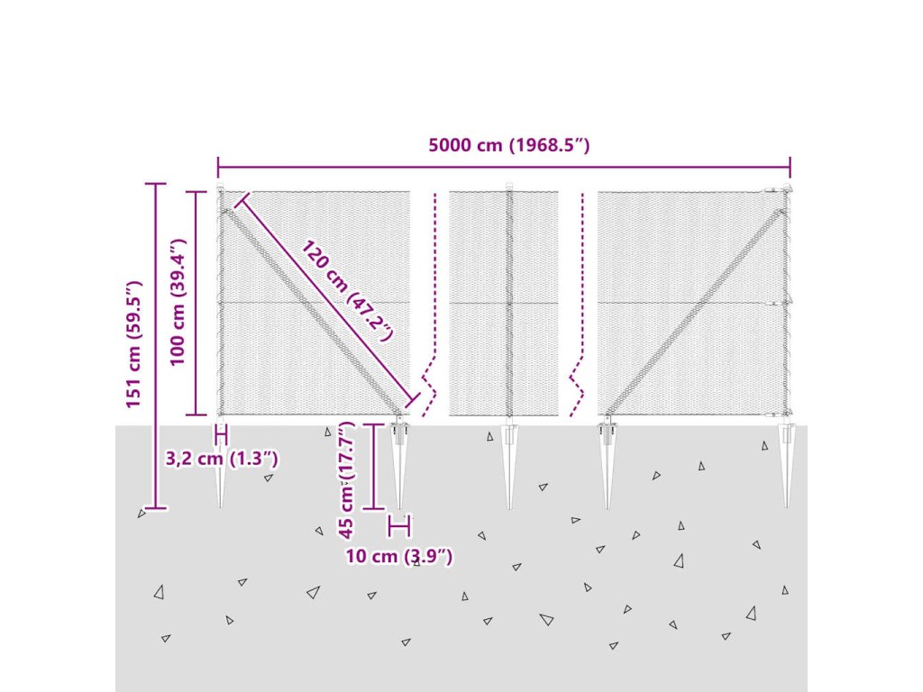 Plotový sloupek. Šedá 50 x 1 m (síť 13 mm) Ocel a PVC 3353271