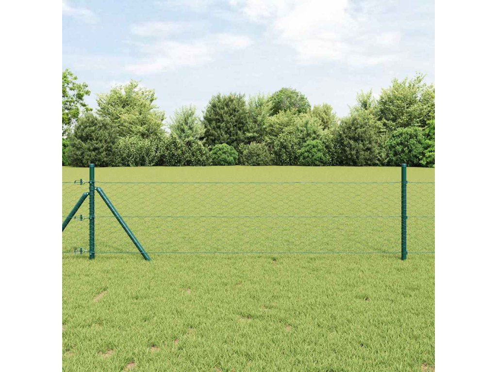 Plotový sloupek. Zelená 10 x 0,8 m (36 mm síť) Ocel a PVC 3352634