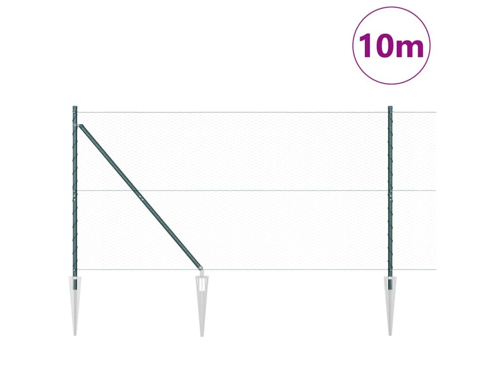 Plotový sloupek. Zelená 10 x 1,2 m (25 mm síť) Ocel a PVC 3353063