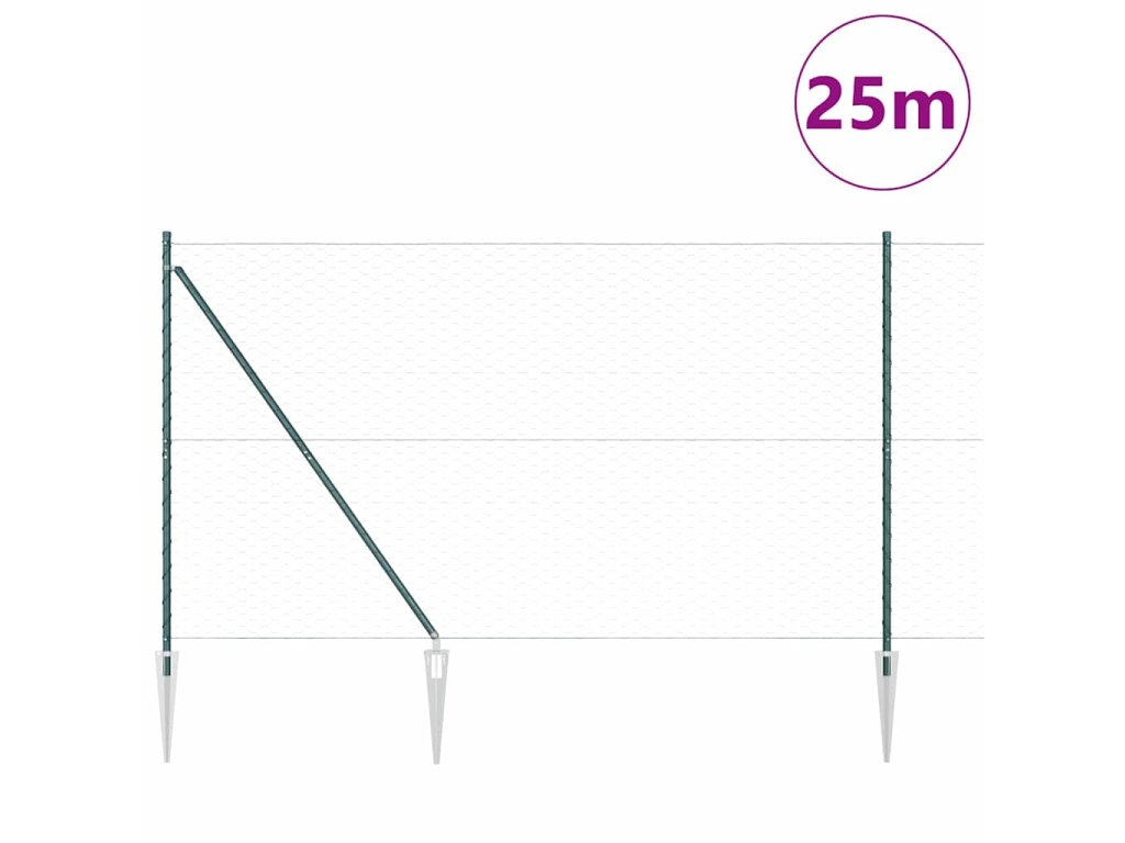 Plotový sloupek. Zelená 25 x 1,6 m (50 mm síť) Ocel a PVC 3353113