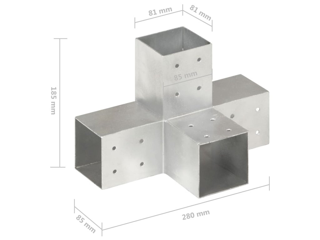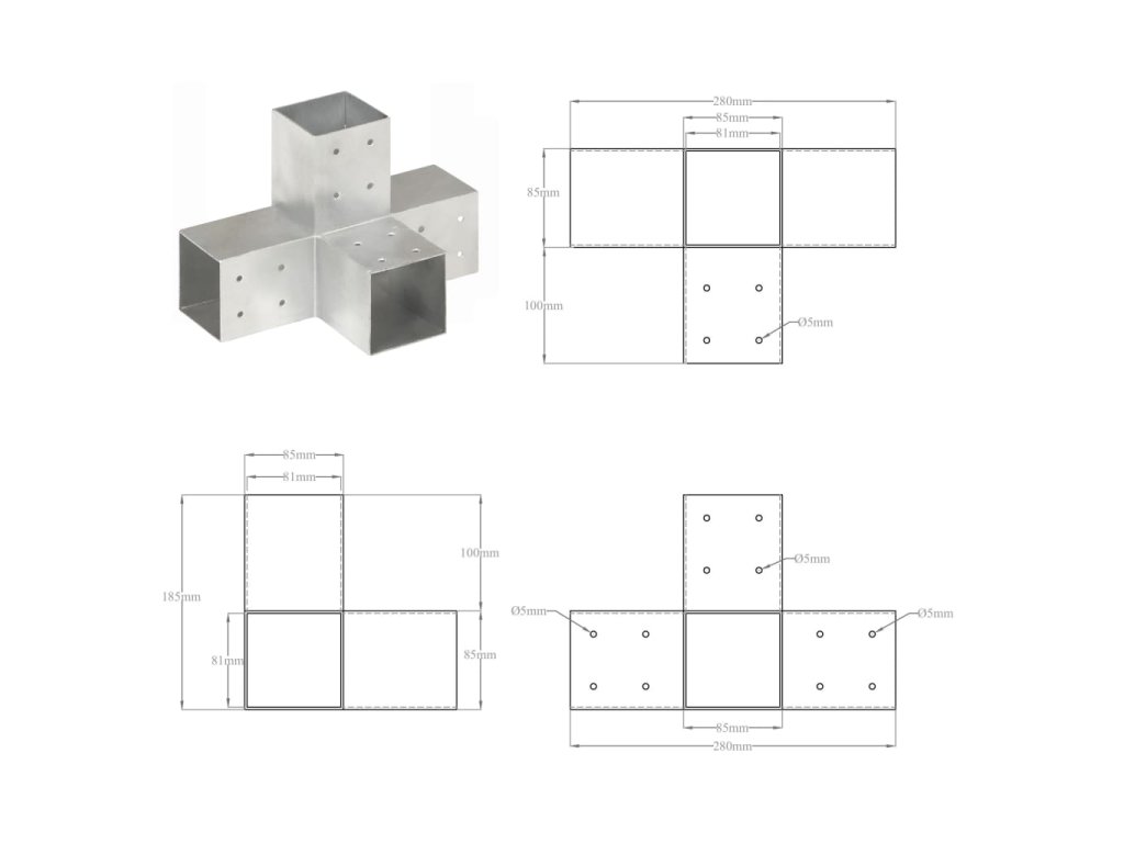 Elektrogalvanizovaná spojka umožňuje snadné připojení a spojení trámů nebo nosníků. Všechny spojky jsou předvrtané. Tato trámová spojka je určená pro 4 čtvercové dřevěné trámy s hranou o délce 81 mm.