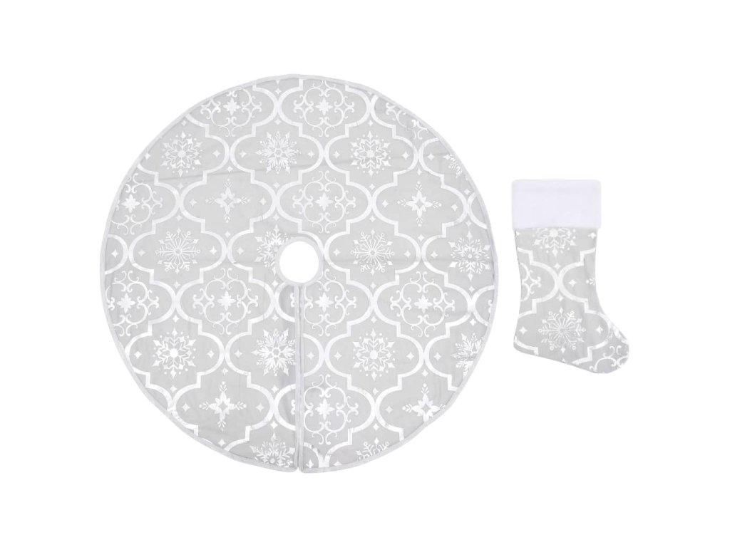 Měkký a teplý koberec pod stromeček zdobí sněhové vločky, což krásně ladí se zimní sváteční atmosférou. Součástí je také vánoční punčocha se stejným vzorem, kterou můžete naplnit sladkostmi, malými dárky apod. Po použití výzdobu pod stromeček snadno poskládáte a můžete ji znovu využít příští rok.