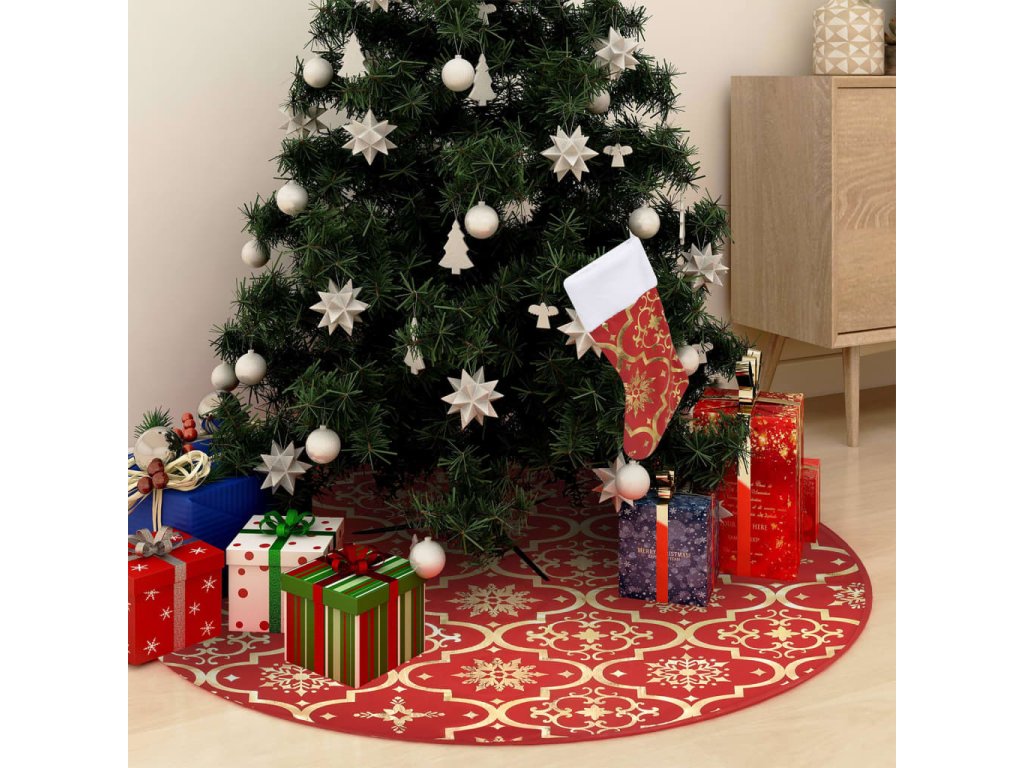 Luxusní podložka pod vánoční stromek s punčochou červená 90 cm 330275
