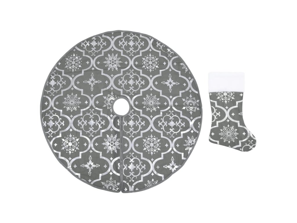 Luxusní podložka pod vánoční stromek s punčochou šedá 90 cm 330281
