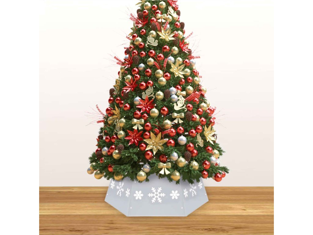 Tato podložka ve tvaru límce, potištěná motivem sněhových vloček, je ideální pro vylepšení vzhledu vašeho vánočního stromku a vytvoření dokonalé sváteční atmosféry. Podložka je vyrobena z kovu, je pevná a vyniká dlouhou životností, takže si ji můžete uskladnit i na další roky.