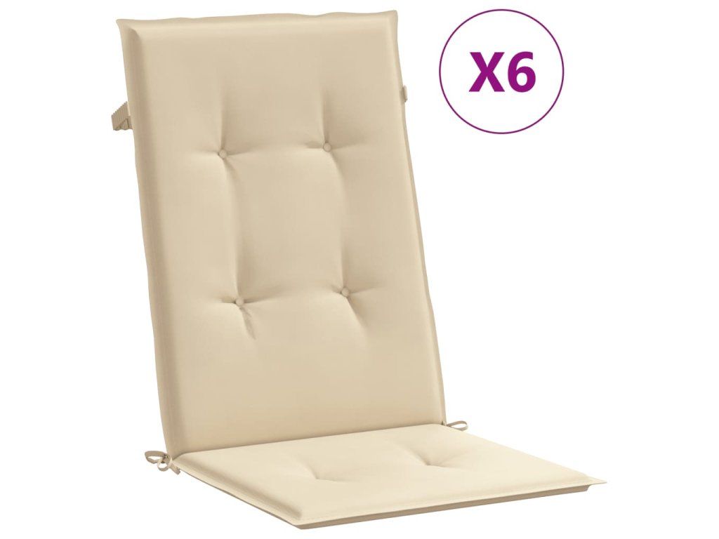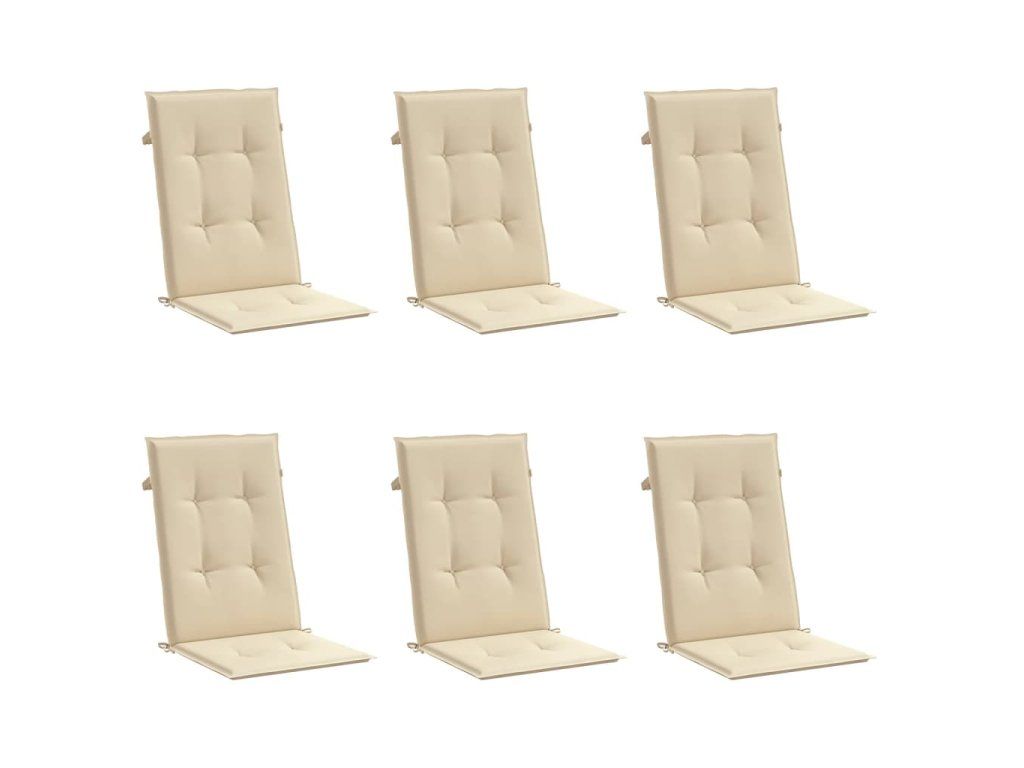 Podušky na židli vysoké opěradlo 6 ks béžové 120x50x3 cm textil 314107