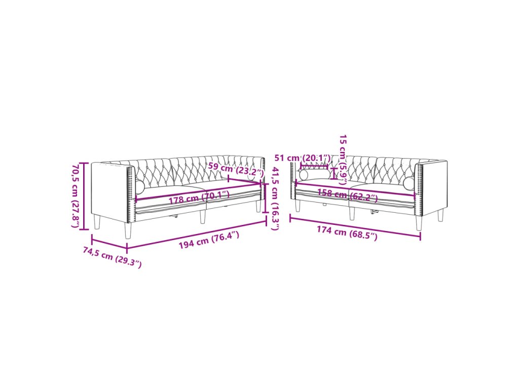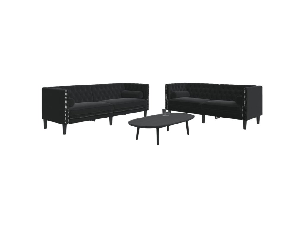 2dílná sedací souprava Chesterfield s podhlavníky černá samet 3209296