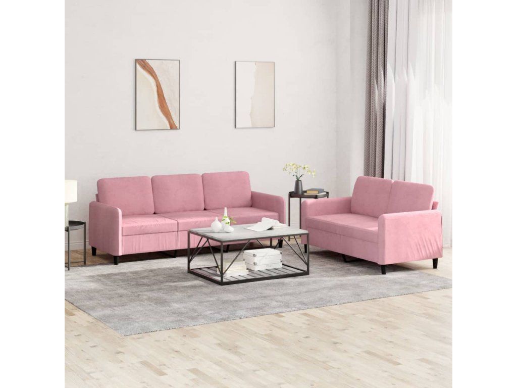 2dílná sedací souprava růžová samet 3202017