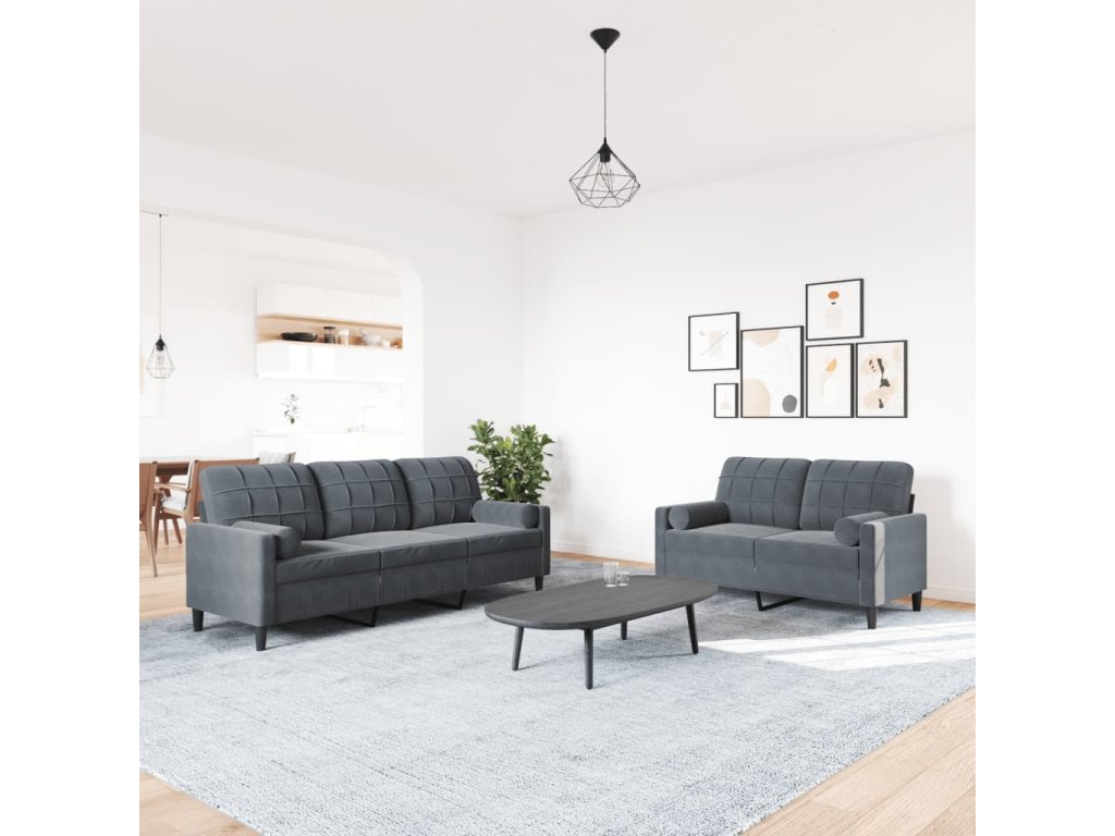 2dílná sedací souprava s poduškami a podhlavníky tmavě šedá 3278412