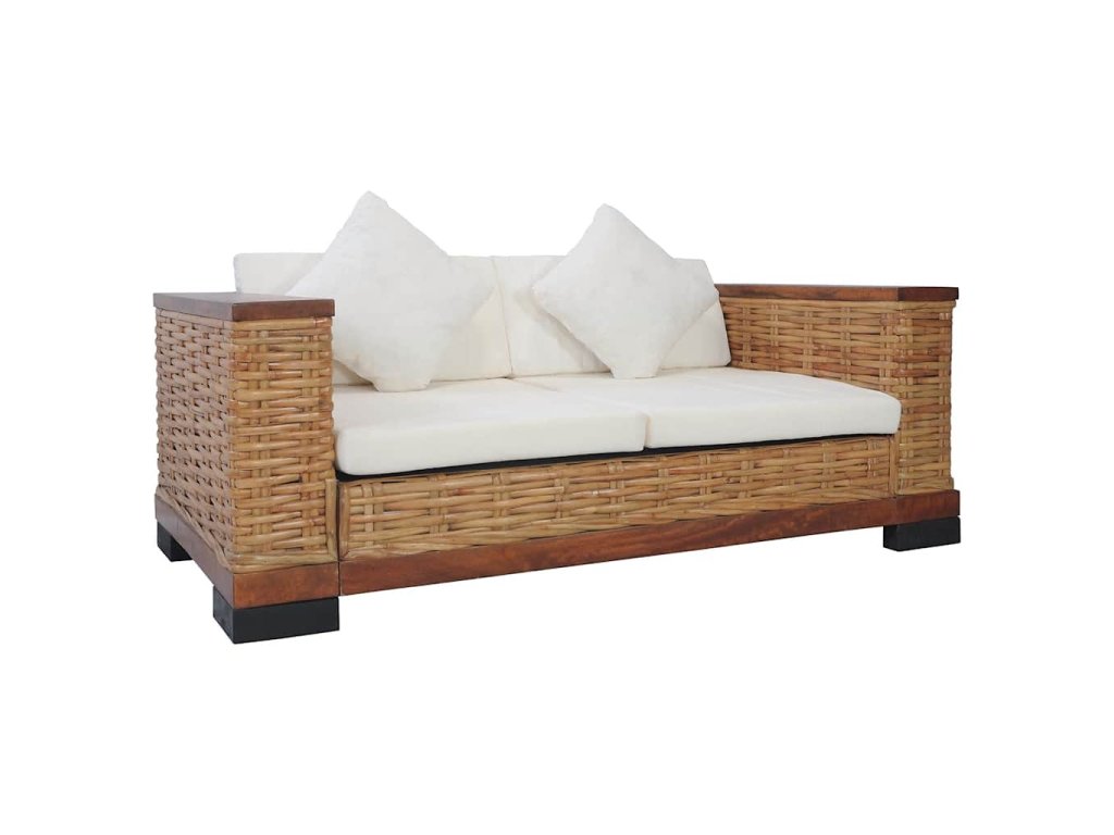 2dílná sedací souprava s poduškami hnědá přírodní ratan 278618