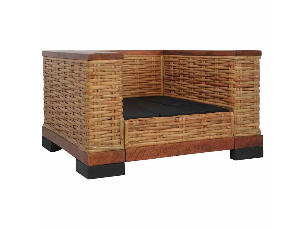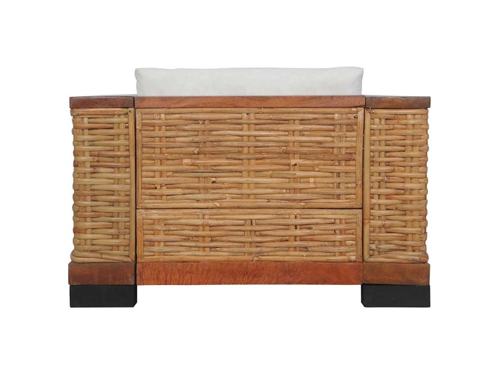 - Materiál: přírodní ratan + rám z masivního mangovníkového dřeva + textilní čalounění