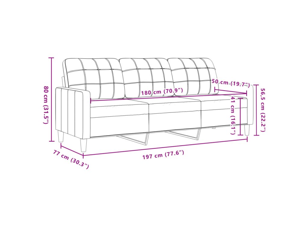 - Celkové rozměry: 197 x 77 x 80 cm (Š x H x V)