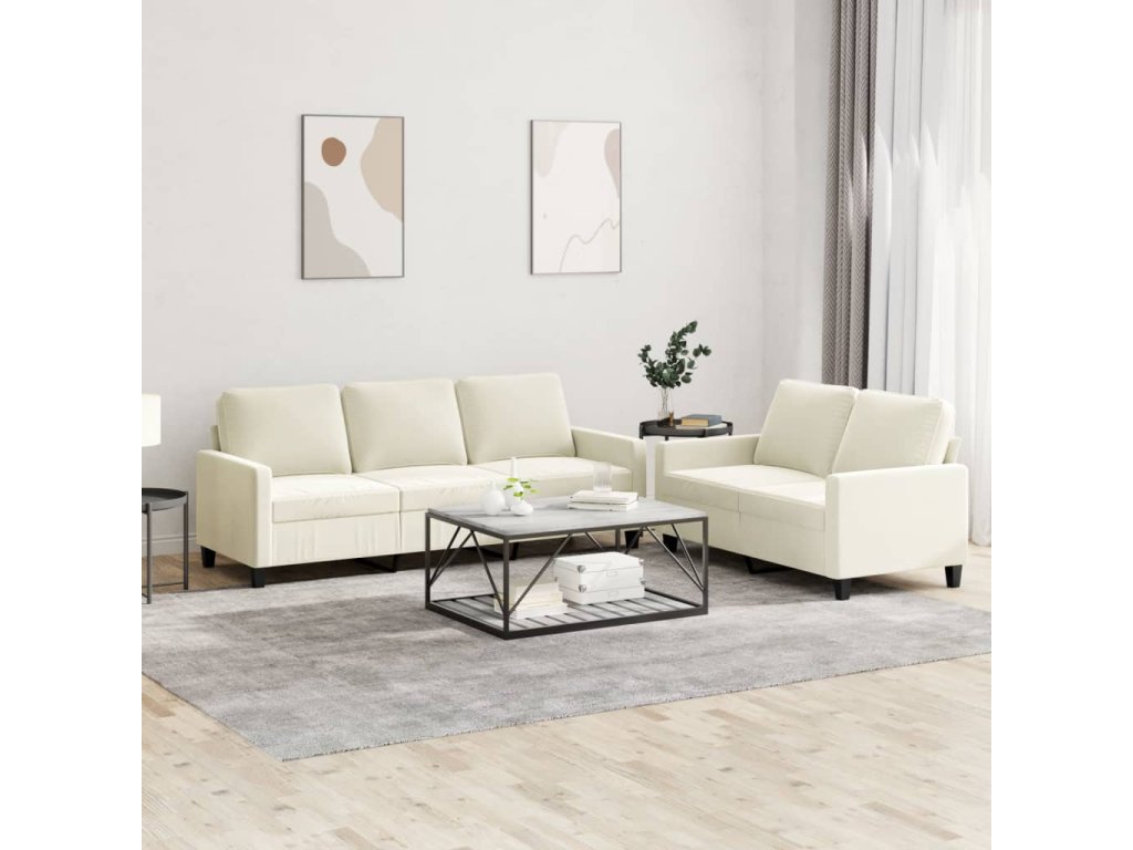2dílná sedací souprava s poduškami krémová samet 3201524